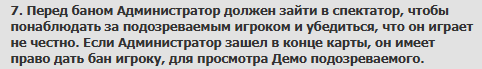 1. Бан без наблюдения Админ не заходил в спектатор чтобы посмотреть за моей игрой что является обязательным по пункту 7 правил для администраторов: "Перед баном Администратор должен зайти в спектатор, чтобы понаблюдать за подозреваемым игроком и убедиться, что он играет не честно."