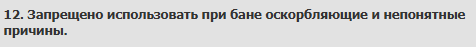 2. Неадекватная причина бана "ПРОВЕРИТЬ НА ПРОКАЧКУ ИЛИ ЧИТЫ" это не конкретная причина а догадка. Это нарушает пункт 12 правил где сказано: "Запрещено использовать при бане оскорбляющие и непонятные причины."