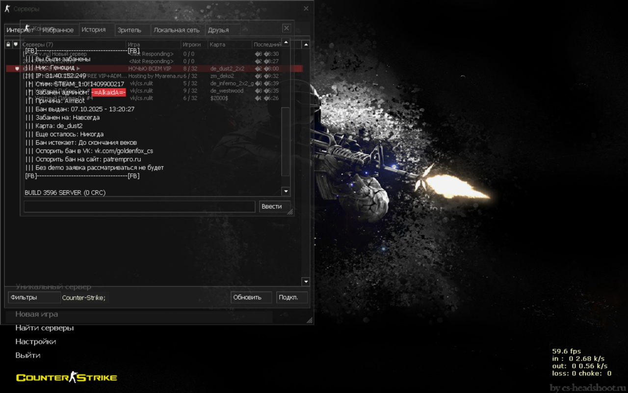 Банит просто так,зашёл поиграть,даю головы,он банит
